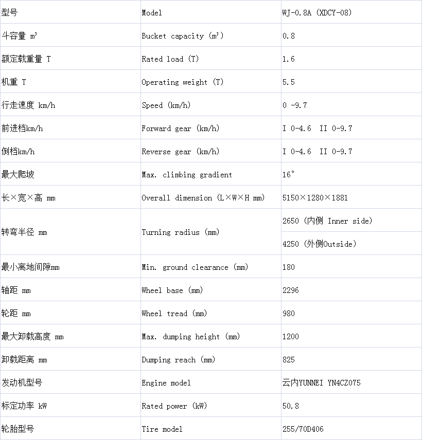 產品詳情 WJ-0.8A (XDCY-08) 0.8立方內燃鏟運機 在線咨詢 產品詳情 主要性能特點 ●動力系統采用4100發動機,扭矩大、動力強勁。 ●傳動系統采用礦山專用液力變矩器、動力換檔變速箱,可靠性高,維修保養方便。 ●工作系統采用先導操控,使操作更加簡單,工作效率更高。 ●行車制動采用氣頂油鉗盤式制動,確保制動安全可靠。 ●尾氣凈化采用氧化催化器及水過濾系統,大大降低了空氣污染。 ●采用255/70D406耐磨防穿刺輪胎,輪胎使用壽命更長。 ●采用技術回轉支承結構,故障率低,易維護。 ●采用液壓轉向,雙轉向油缸,轉向更平穩。 ●整車機架鋼板加厚,整車鋼性增強,鏟斗鏟刃采用高強度合金鋼制造,耐磨抗剪切, V型結構,減小了鏟取阻力,使用壽命更長。 ●該機結構緊湊,轉彎半徑小,可進行鏟、裝、運、卸一體作業,操作方便,作業效率高。適合回采出礦和巷道掘進出碴,以及工作場地和道路的修筑平整,材料運輸等輔助作業。